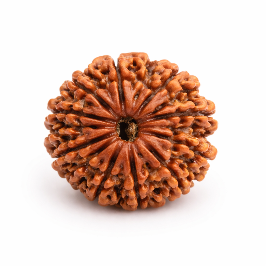 The 21 Mukhi Indonesian Rudraksha is a rare bead associated with Lord Kubera, symbolizing wealth, stability, and protection. Lightweight and comfortable for daily wear, it is believed to support steady prosperity, leadership, and spiritual balance.