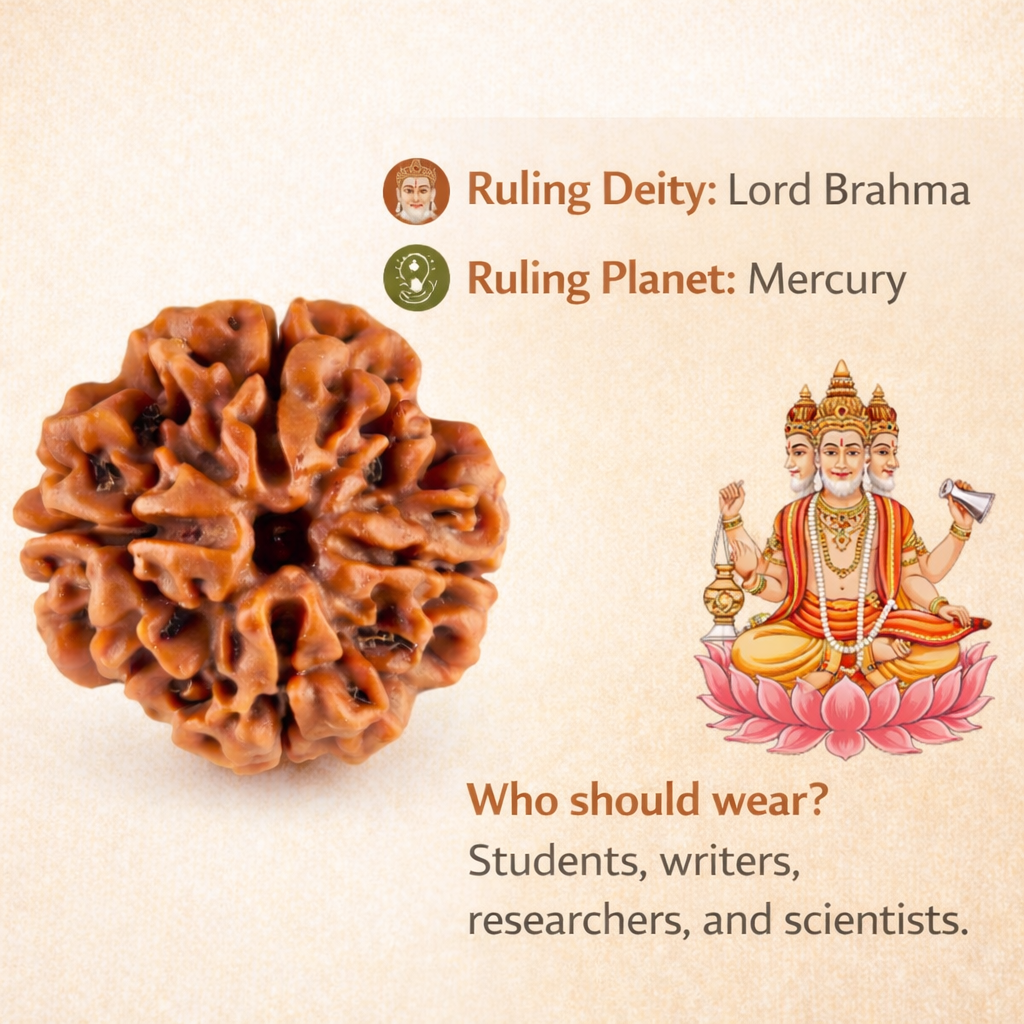 Tags: 4 Mukhi, 4 Mukhi Rudraksha, clarity of thought, intellectual growth, self-expression, wisdom