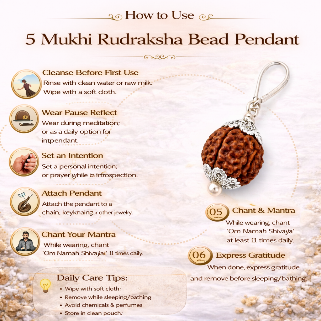 This pendant comes with certification, ensuring that the Rudraksha bead is original and properly sourced. Each 5 Mukhi bead has a unique surface and pattern, making every piece slightly different and authentic. The bead is set in a clean and simple pendant design, allowing it to be easily worn with a chain or thread.