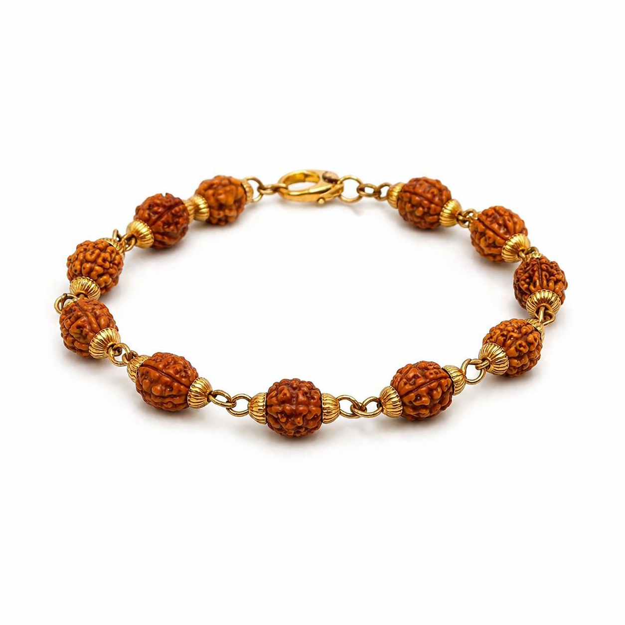 Buy Golden Rudraksha Bracelet for men made with natural beads and gold finish. Stylish and comfortable for daily wear, offering a perfect mix of tradition and modern look.