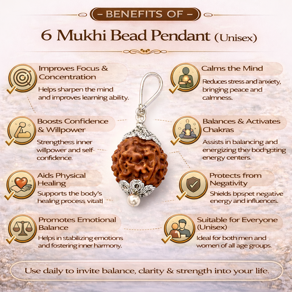 This certified 6 Mukhi Bead Pendant is also a thoughtful gifting option. It can be given on special occasions like birthdays, festivals, or personal milestones as a symbol of strength, positivity, and good wishes. The certification adds trust and value, making it a meaningful and reliable gift.