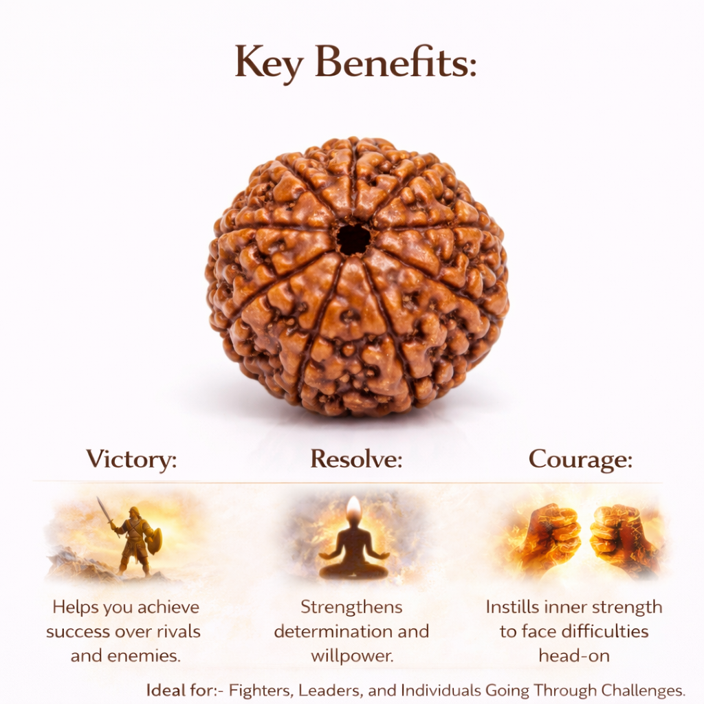 The Indonesian 9 Mukhi bead is especially valued for its lightweight nature, durability, smooth surface finish, and comfortable size, making it ideal for those who wear spiritual beads while maintaining an active daily routine. It is commonly chosen by students preparing for competitive exams, professionals who speak or perform publicly, managers handling leadership responsibilities, athletes training for victory, entrepreneurs building long-term ventures, and individuals stepping into new careers or breaking repetitive cycles of failure, emotional burden, guilt, procrastination, or delays in progress.