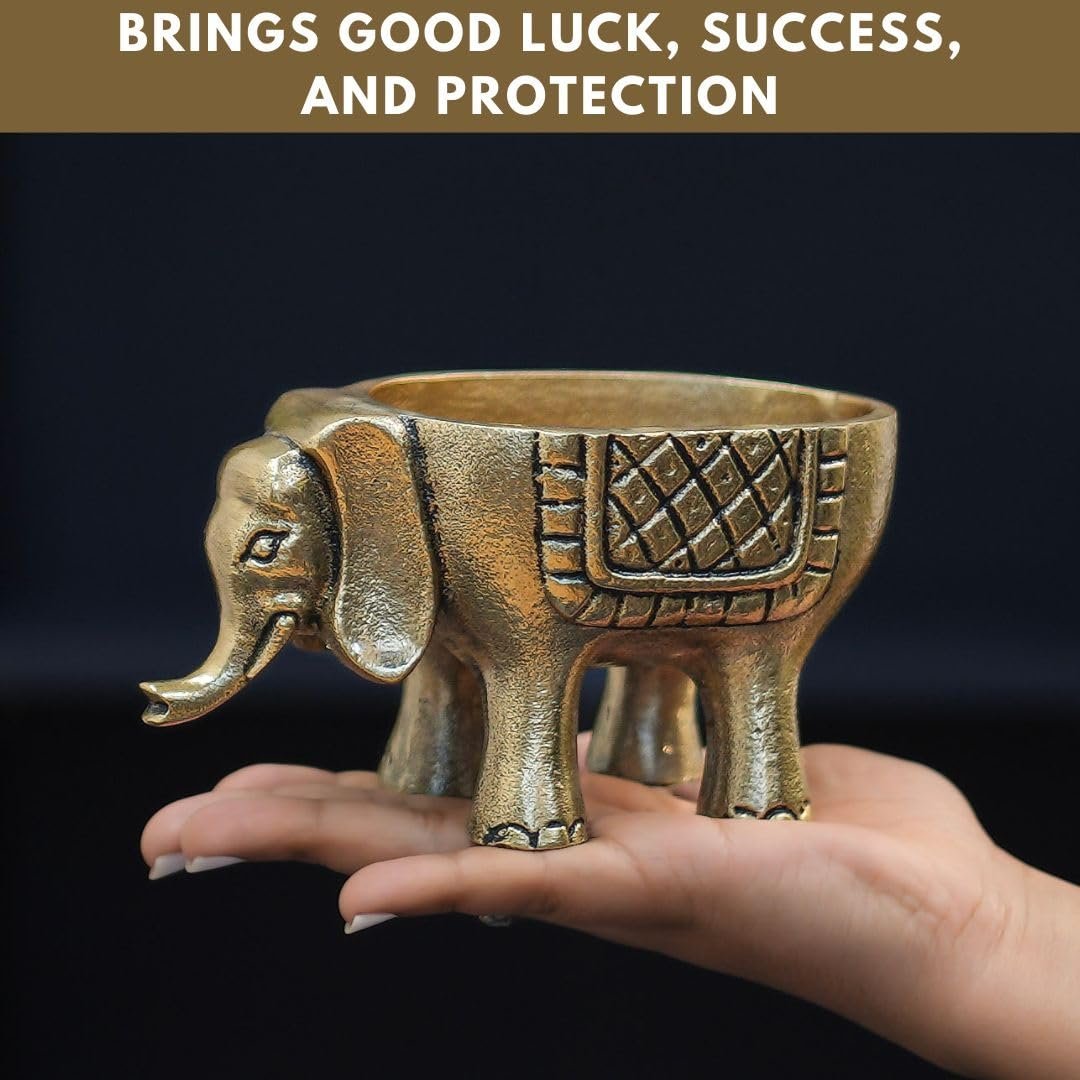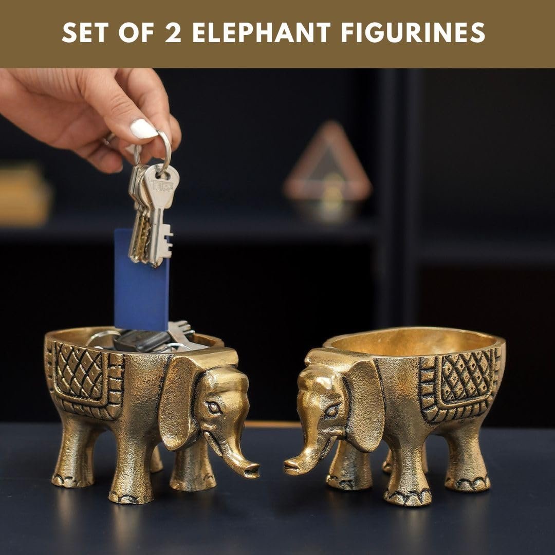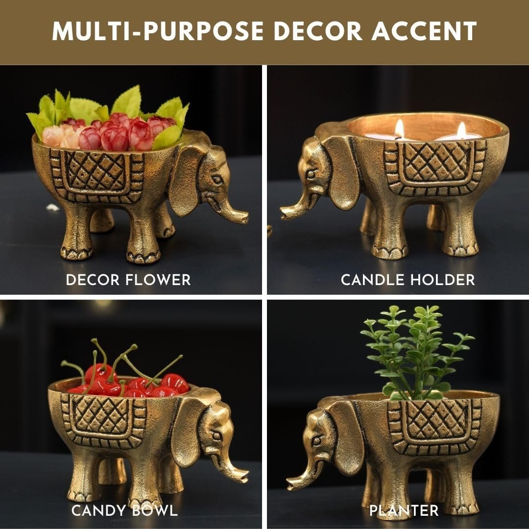 - Package Content : Two Metal (Aluminium) Elephant Planter & Decor Accent in Antique Brass colour finish