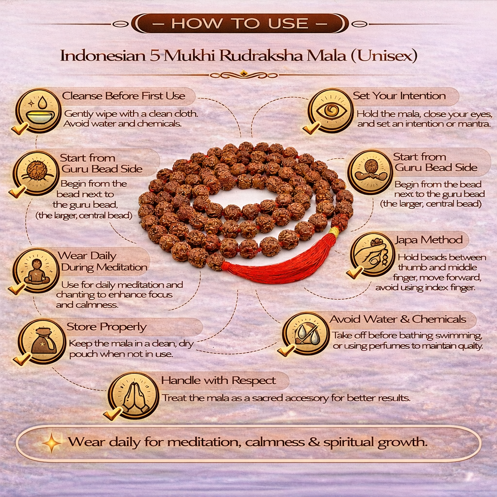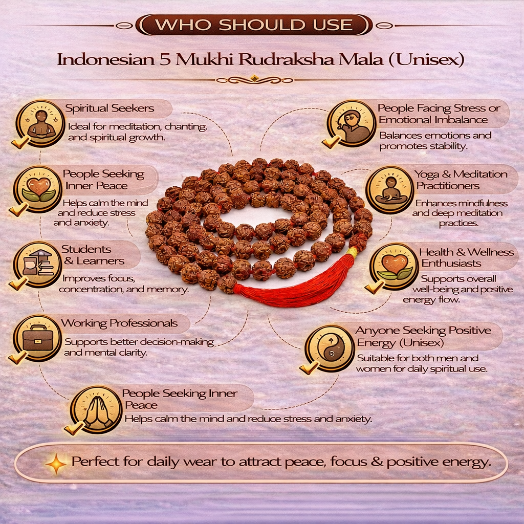 If you are looking to buy an Indonesian 5 Mukhi Rudraksha Mala for men and women online, this mala offers a good balance of comfort, natural quality, and spiritual value. It is a reliable choice for daily wear and meditation while staying connected to traditional practices.