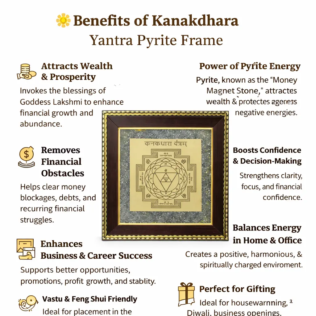 Invite wealth & prosperity with the Kanakdhara Yantra Pyrite Frame. Attract abundance, remove financial obstacles & enhance positive energy.