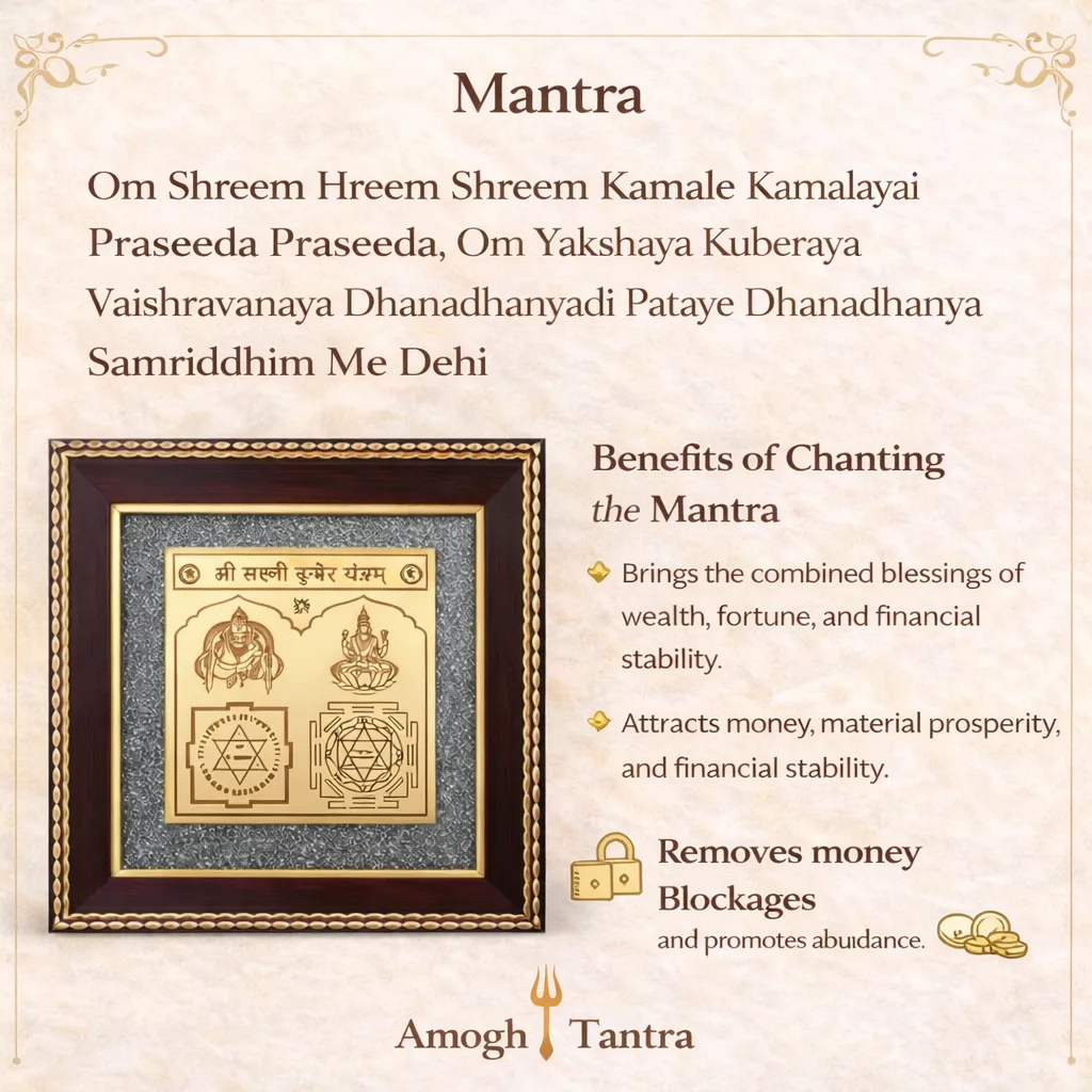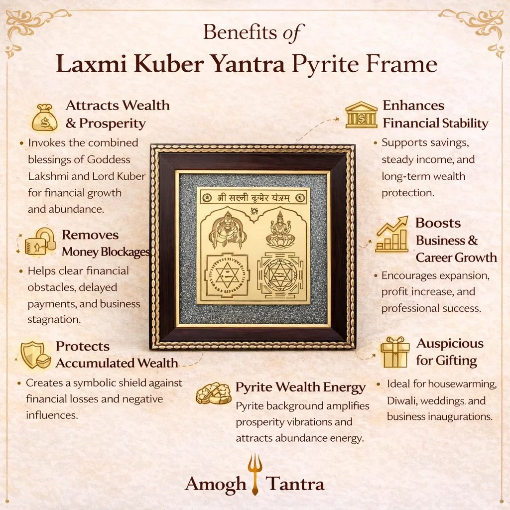 Invite the combined blessings of Goddess Lakshmi and Lord Kuber into your life with the Laxmi Kuber Yantra Pyrite Frame from Amogh Tantra — a sacred symbol of wealth, protection, and prosperity.